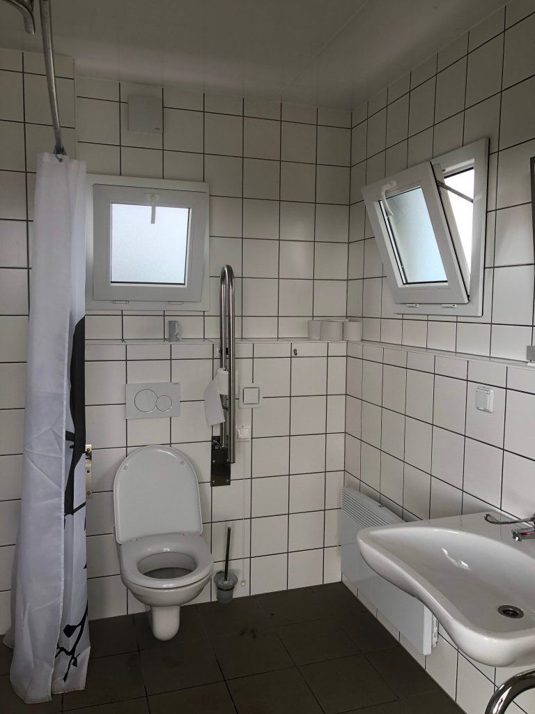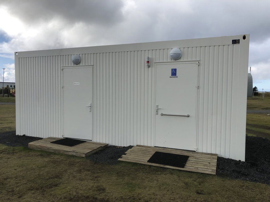 Um sumarið 2018 var tekin í notkun þessi myndarlega salernisaðstaða við tjaldstæðið í Vogum, Vatsnleysisströnd. Um er að ræða 21 fermetra húseiningu og þar er gert ráð fyrir hreyfihömluðum notendum.